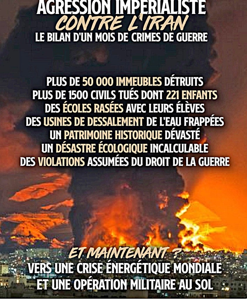 Aujourd’hui l’Iran, au mieux, ne peut que détruire les excréments arabo-sunnites de la rive droite du Golfe Persique et quelques bases militaires US. Alors que des installations vitales (centrales électriques) et culturelles (universités) sont détruites et que le psychopathe à la tête de l’empire déclinant jure de renvoyer cette civilisation millénaire à ‘l »âge de pierre », il ne semble pas que la RII ait programmé une dissuasion de contre terrorisme sur le sol de l’ennemi, sinon on le saurait déjà…et l’agression n’aurait pu commencer dans ces proportions.