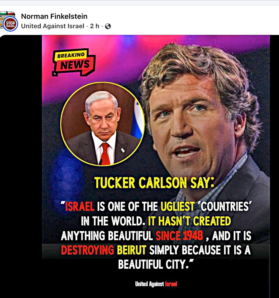 Ce ne sera possible que s’il se plie aux conditions proposées ici, ce qui signifie la disparition définitive de l’excrément colonial sioniste, demandée entre autres par une forte proportion peur-être déjà majoritaire de juifs du monde entier (ceux d’ « Israel » non compris). La contestation pour le larbin est peut-être encore plus contraignante dans ses propres rangs comme ce représentant du courant MAGA authentique, Tucker Carlson qui ne mâche pas ses mots.